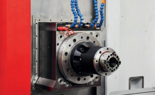- 主軸箱由球墨鑄鐵GGG60鑄造而成,配備數(shù)控伺服電機(jī)轉(zhuǎn)動(dòng)主軸,連續(xù)調(diào)節(jié)其轉(zhuǎn)速。